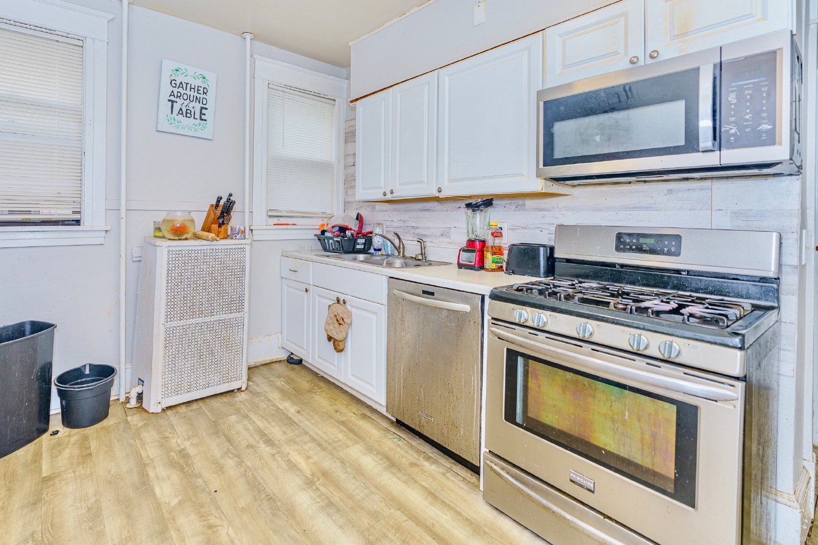 This property boasts updated kitchens with stainless steel appliances, dishwashers, gas stoves, gleaming hardwood floors, off-street parking, laundry in the basement, front porches, and separate gas/electric utilities. This is a must see!